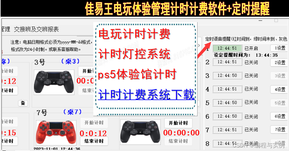 1、电玩体验馆管理软件在计时的同时可以设置定时提醒,到时间电脑发出语音提示音