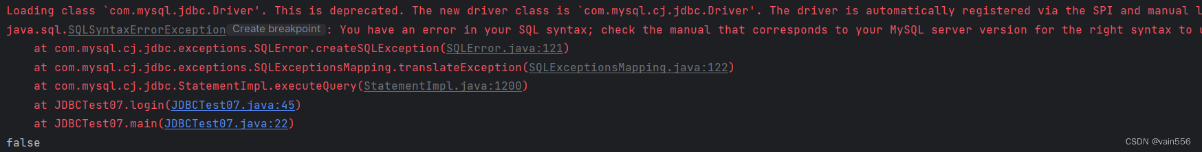 错误的原因是:在执行prepareStatement的时候已经传入sql了,执行excuteQuary时又传入一遍