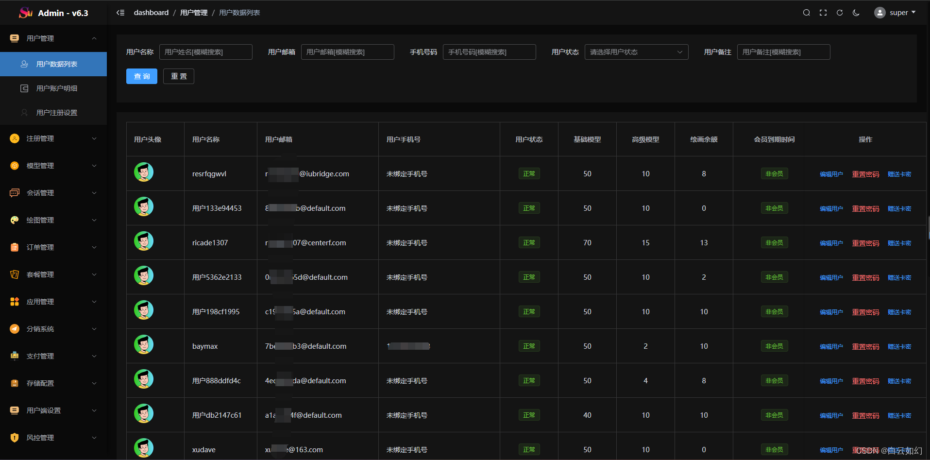 管理端支持超管和普通演示账户用于分销系统、普通账号仅可读权限