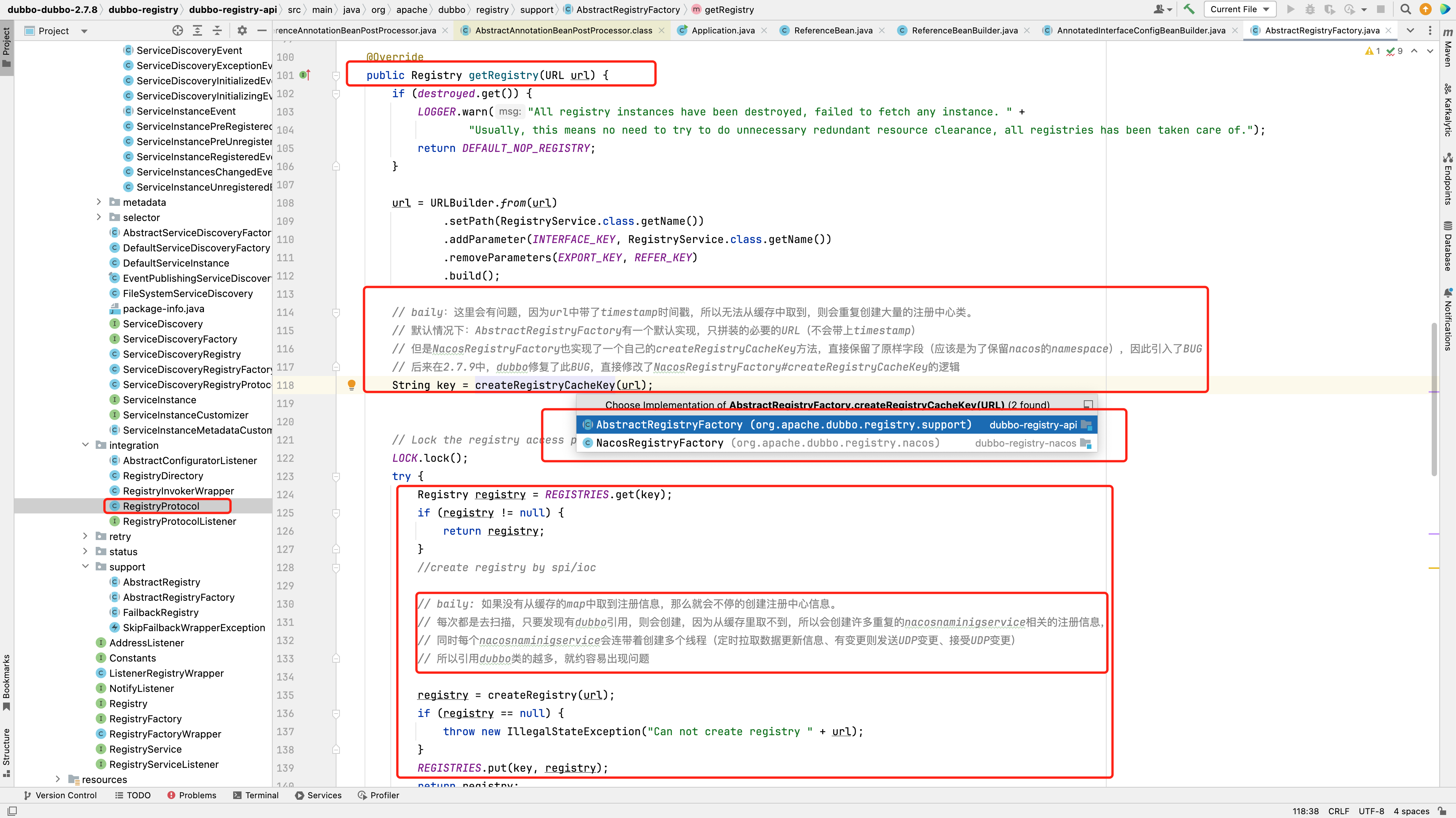 这个问题是在dubbo的2.7.8版本出现的,最后通过将2.7.9的修复class替换了2.7.8的NacosRegistryFactoryclass类,然后重新打了dubbo依赖包,问题得以解决。