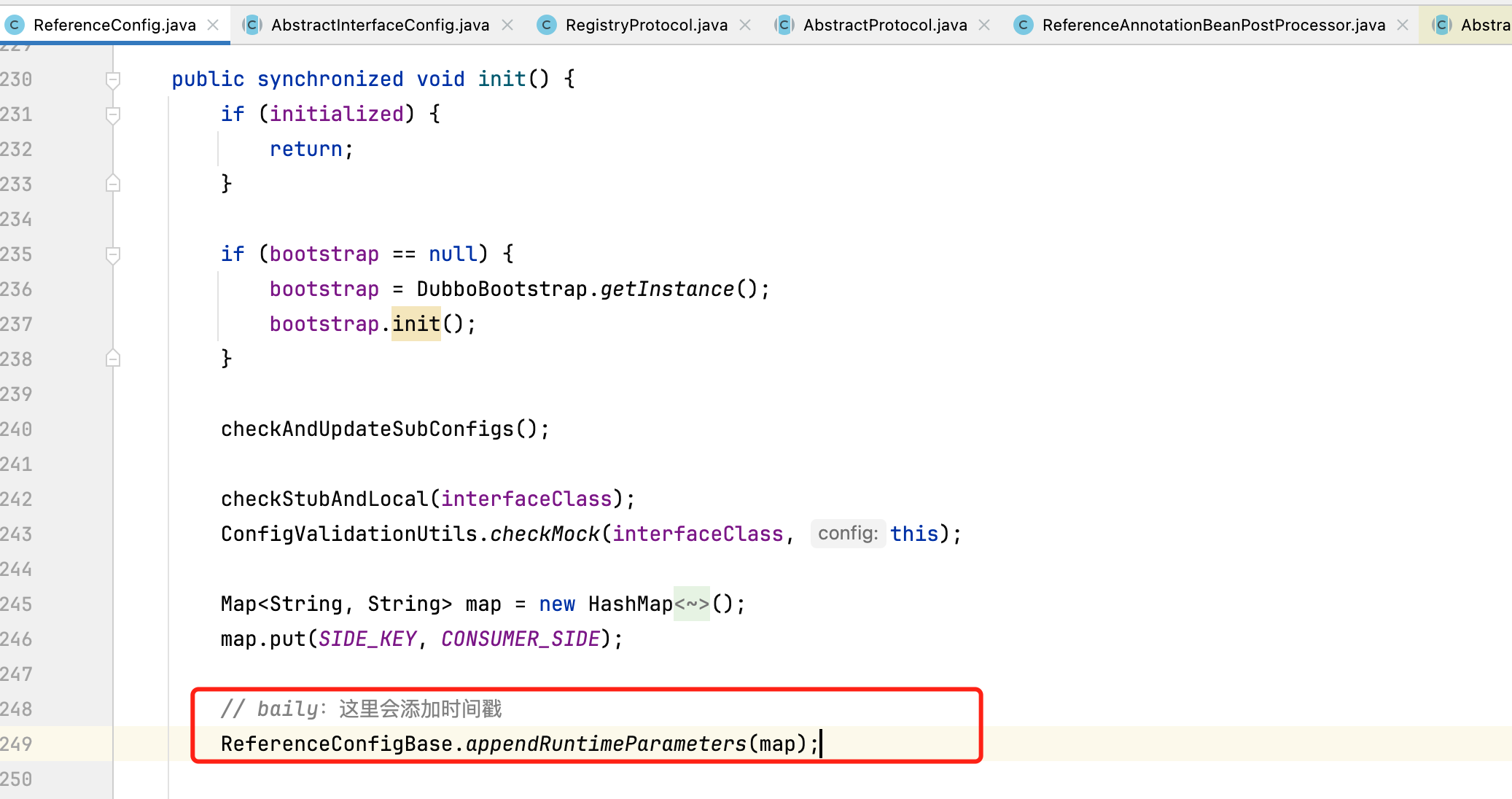 再次查看ReferenceConfig#init方法的源码,确实是加入了timestamp参数: