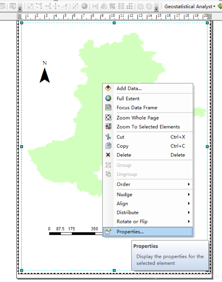 接下来,我们需要设置图片边框上的格网。在研究区域图层上右键,选择属性。
