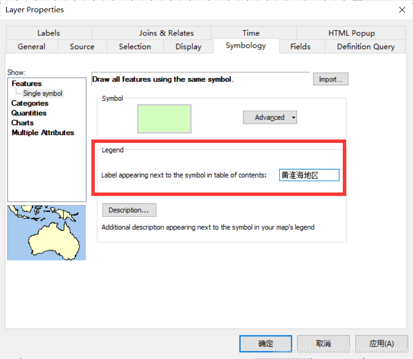 此外,添加图例时,可以直接在图层属性中修改图例框中该图层所显示的内容。