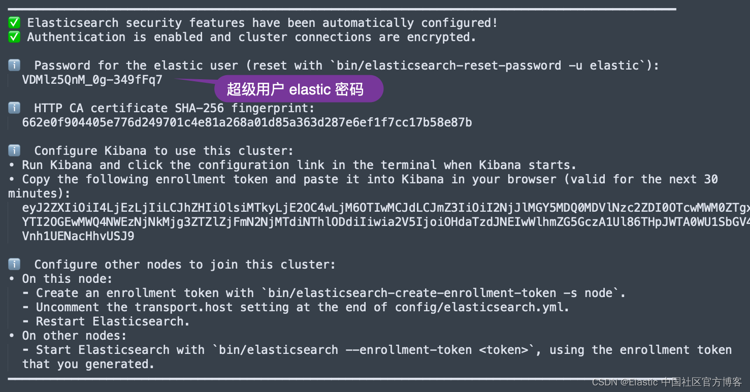 我们需要记住超级用户 elastic 的密码。
