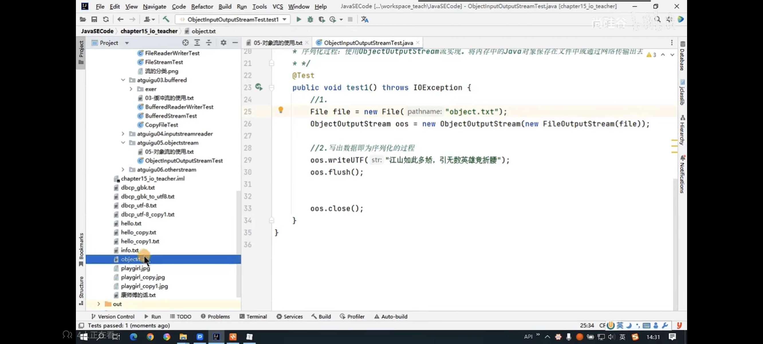- 序列化过程:使用ObjectOutputStream流实现。将内存中的Java对象保存在文件中或通过网络传输出去
