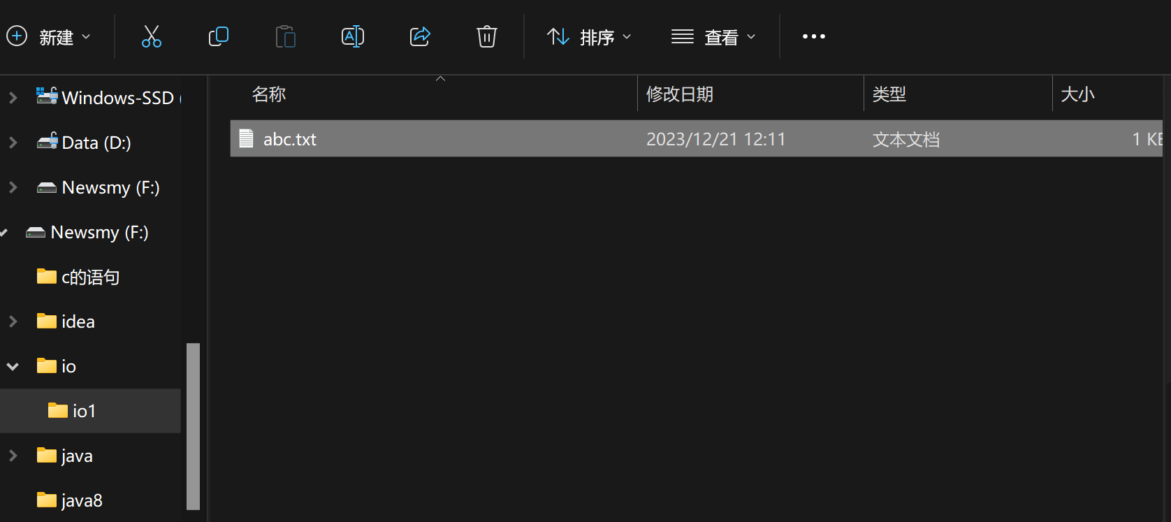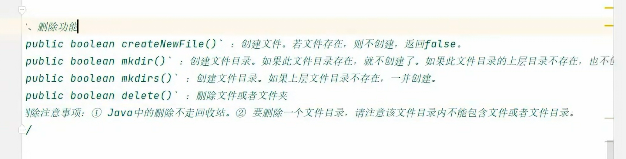 - FILE类中声明了新建、删除、获取名称、重命名等方法,并没有涉及到文件内的读写操作。要想实现文件内容的读写,就需要使用IO流