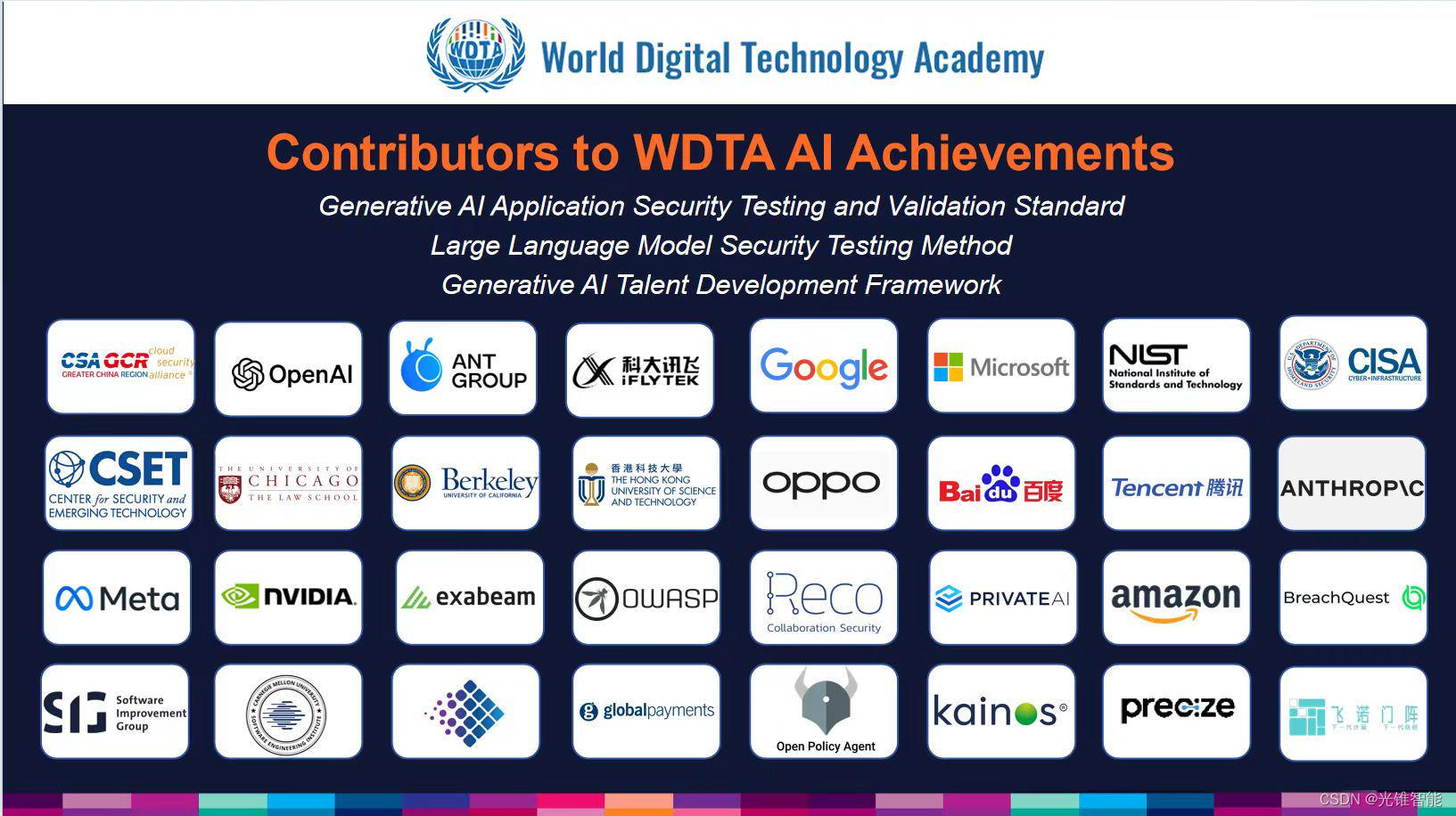 (图:WDTA发布大模型安全国际标准,OpenAI、蚂蚁集团、科大讯飞等参编)