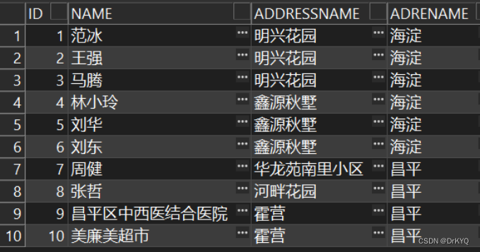 分析 :此查询需要三表关联查询。分别是业主表 ,业主分类表和地址表