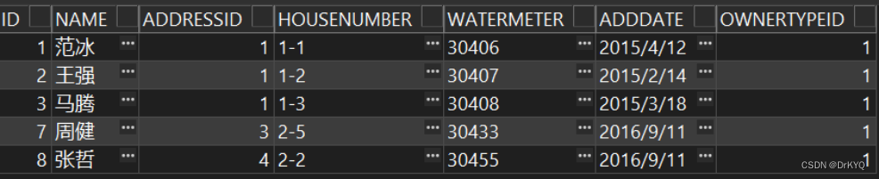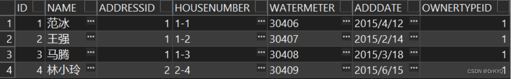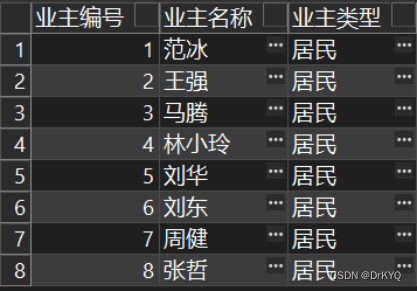 ( 2 ) 需求 :查询显示业主编号 ,业主名称、地址和业主类型 ,如下图