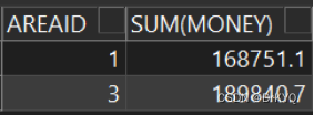 | select areaid,sum(money) from t_account group by areaid having sum(money)>169000 |