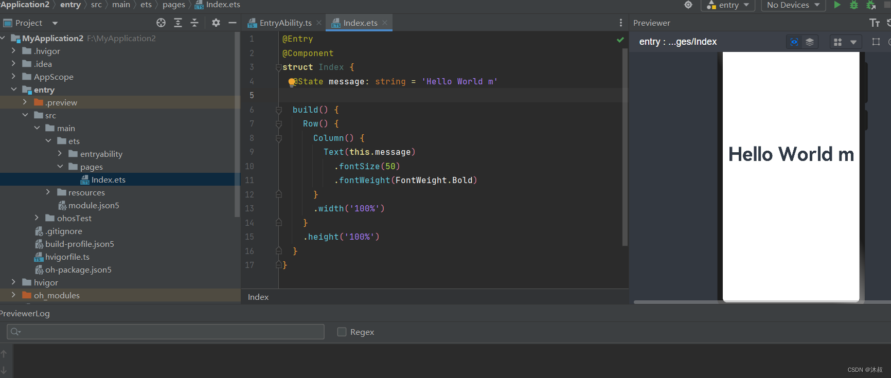 @Component和@State都是装饰器,@Component表示自定义组件,@Entry表示该自定义组件