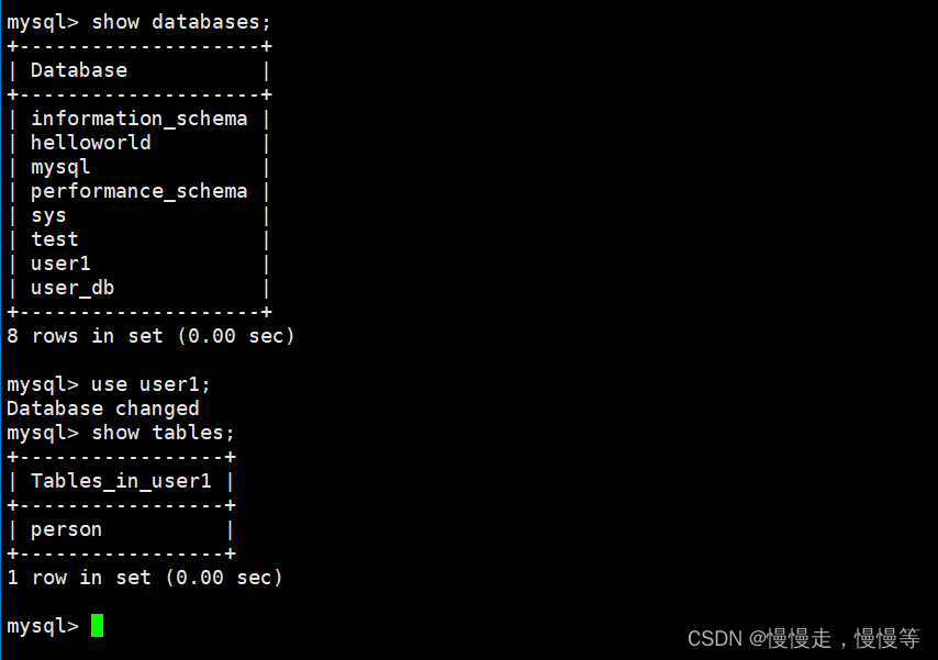这里数据库user1被恢复回来了,同时person表也恢复了