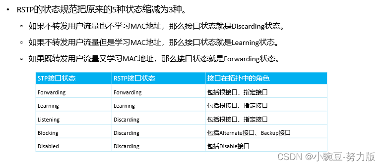 (2)STP没有细致区分接口状态和接口角色,不利于初学者学习及部署。