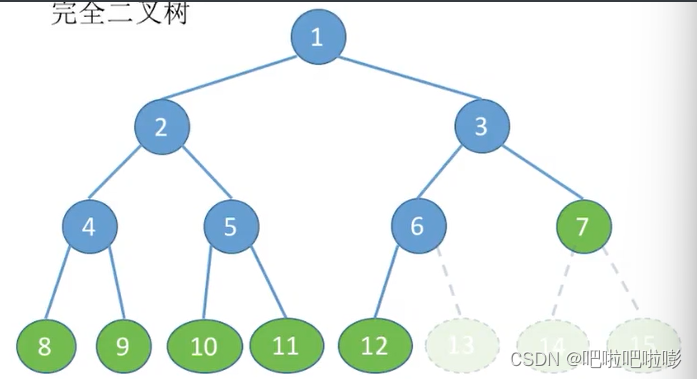 非完全二叉树中,,把二叉树的结点编号与完全二叉树的对应起来:
