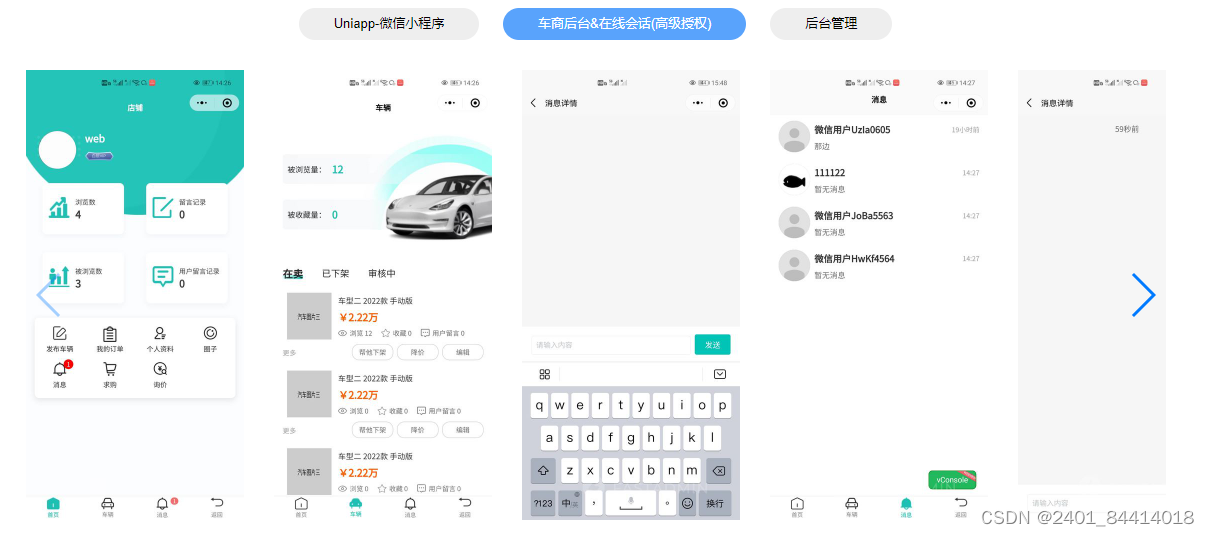 提升客户体验:用户可以通过手机或电脑端购车、预约试驾、在线咨询等方式与车商进行沟通,方便快捷。此外,用户还可以通过系统实时了解车况、贷款额度、购车流程等信息,增强了客户的信任感和满意度。