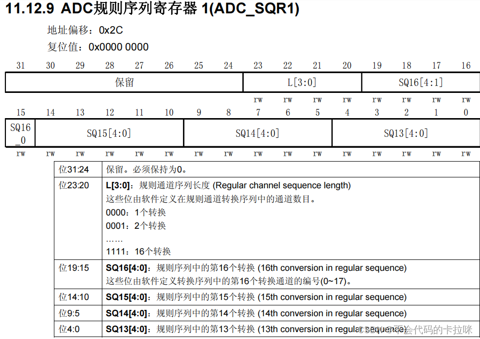 - ADC_StructInit.ADC_NbrOfChannel = len; //配置要转换通道的数目