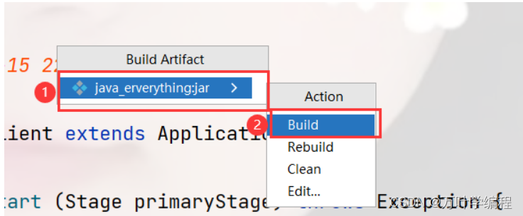 6. 选择点击build就会在前面设置的路径下生成我们的jar包,其实这个jar包就已经可以运行了,继续看下去我们把它变成exe可执行文件。