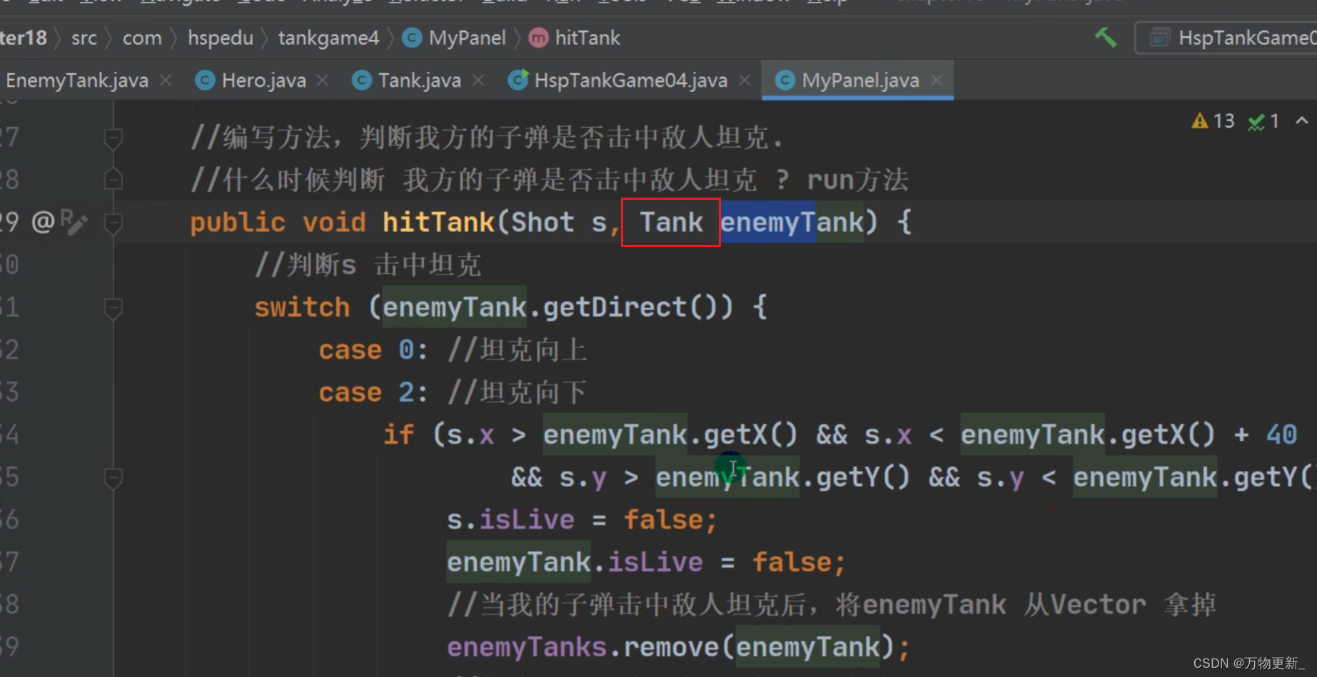 判断我们的子弹是否击中了敌人坦克 移动到hitEnemyTank()下面