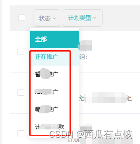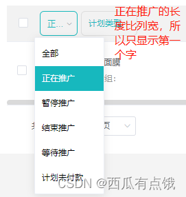 要求改进筛选的样式,达到图2的效果,主要是状态列,既希望这列的宽度固定,不会随着过长的筛选项被撑开,还要在筛选项内容比宽度长时,只保留第一个字,其余用省略号代替。记录一下这个麻烦的要求