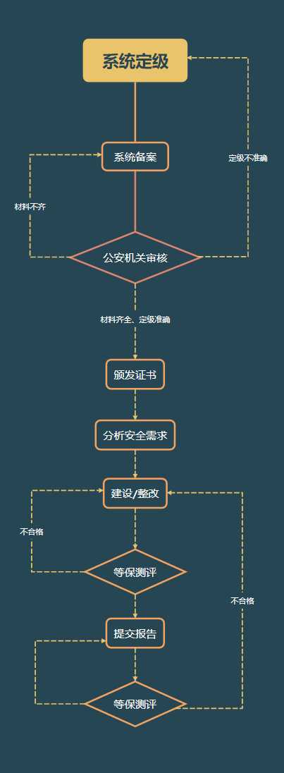 *系统定级:信息系统运营使用单位按照《信心系统安全等级保护定级指南》,确定信息系统安全等级。有主管部门的,报主管部门审核批准。在申报系统新建、改建、扩建立项时需同时向立项审批部门提交定级报告。