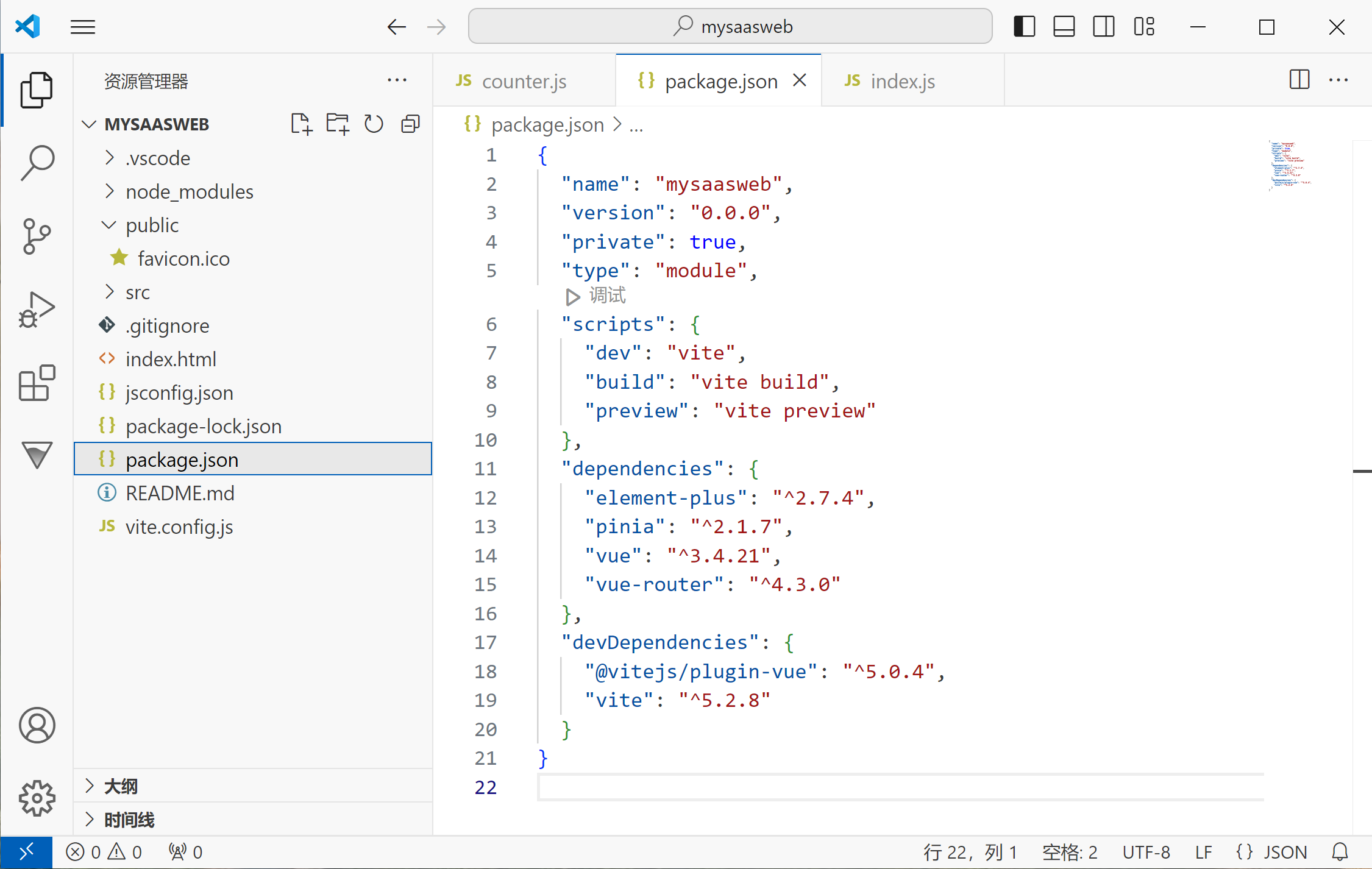 目前,前端开发工具有很多,例如,Webstorm、HBuilder、Visual Studio Code(VScode)、Nodepad++等,在这里,我们使用VScode来开发Vue项目。利用VScode开发所创建的Vue项目的目录E:\vue\mysaasweb,如下图所示。
