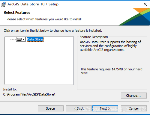 2、指定内容目录,这步很重要!强烈建议安装在C盘!!!如果空间不足(托管的服务数据会在这里存储,特别是三维数据,所以需要很多的空间!!),可以按在空间大的盘,比如E:\arcgisdatastore也可以,然后点击下一步。
