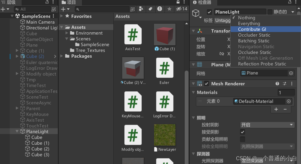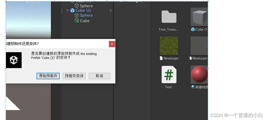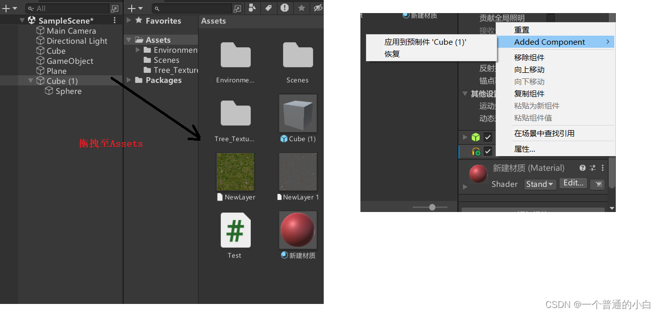 5.2.预设体:将物体拖拽至Assets,形成预制体