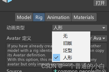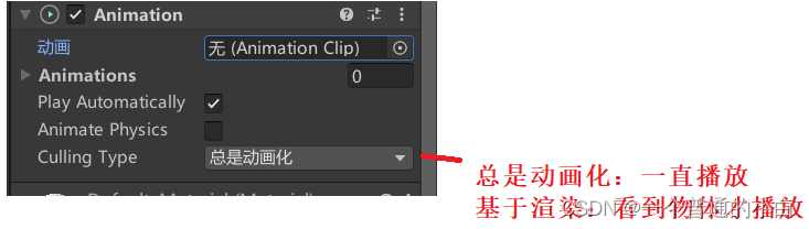 介绍:无:无动画;旧版:使用Animation组件的动画;泛型:使用Animator的非人动画;人形:使用Animator的人形动画;