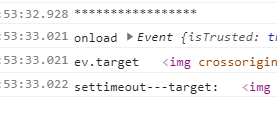 const tempImg = new Image(); tempImg.setAttribute('crossOrigin', 'Anonymous'); tempImg.src = this.imgResize; console.log('*****************'); tempImg.onload = (ev) => { console.log('onload', ev); console.log('ev.target',ev.target); const t_target=ev.target; setTimeout(() => { console.log('settimeout---target:',t_target) // <- HTMLElement }, 0)