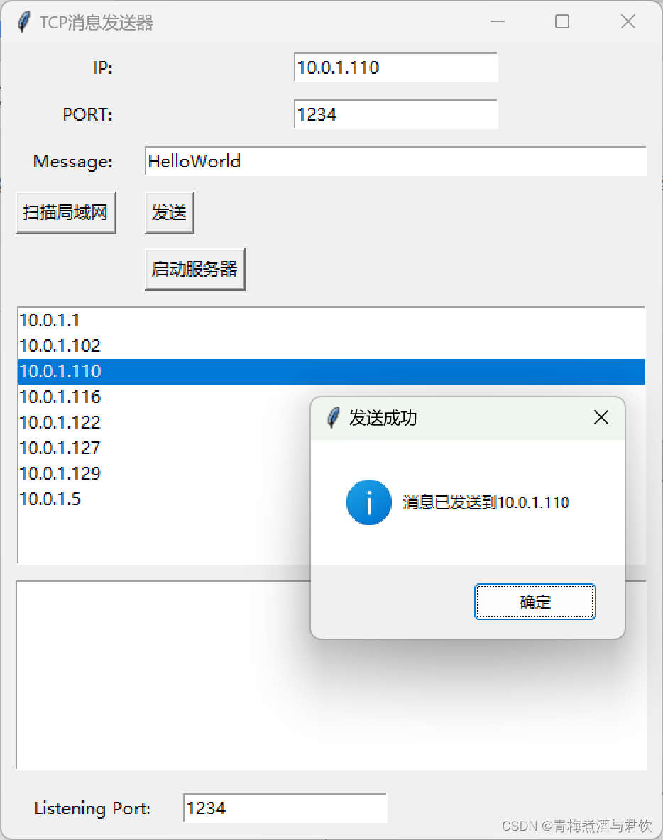 - messagebox.showinfo("服务器启动", f"服务器正在监听端口 {port}")