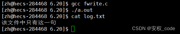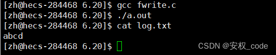 注意:因为open的打开模式加上了O_TRUNC,所以每次调用open时会把log.txt的内容清空再打开,若open模式中没有O_TRUNC,则每次调用open时不会清空文件内容,但是是从文件是最开始进行覆盖式的写入,具体代码如下: