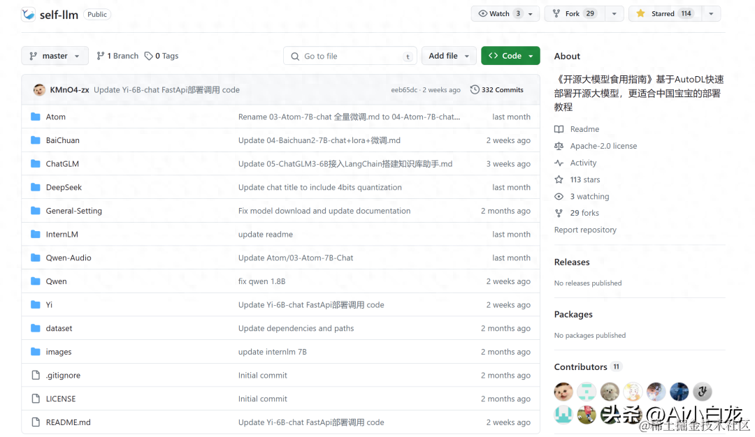 《开源大模型食用指南》 是一个围绕开源大模型、针对国内初学者、基于 AutoDL 平台的中国宝宝专属大模型教程,针对各类开源大模型提供包括环境配置、本地部署、高效微调等技能在内的全流程指导,简化开源大模型的部署、使用和应用流程,让更多的普通学生、研究者更好地使用开源大模型,帮助开源、自由的大模型更快融入到普通学习者的生活中。