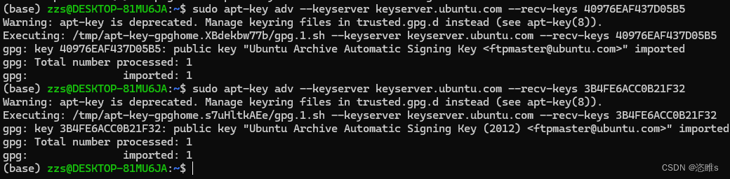 - sudo apt-key adv --keyserver keyserver.ubuntu.com --recv-keys 40976EAF437D05B5