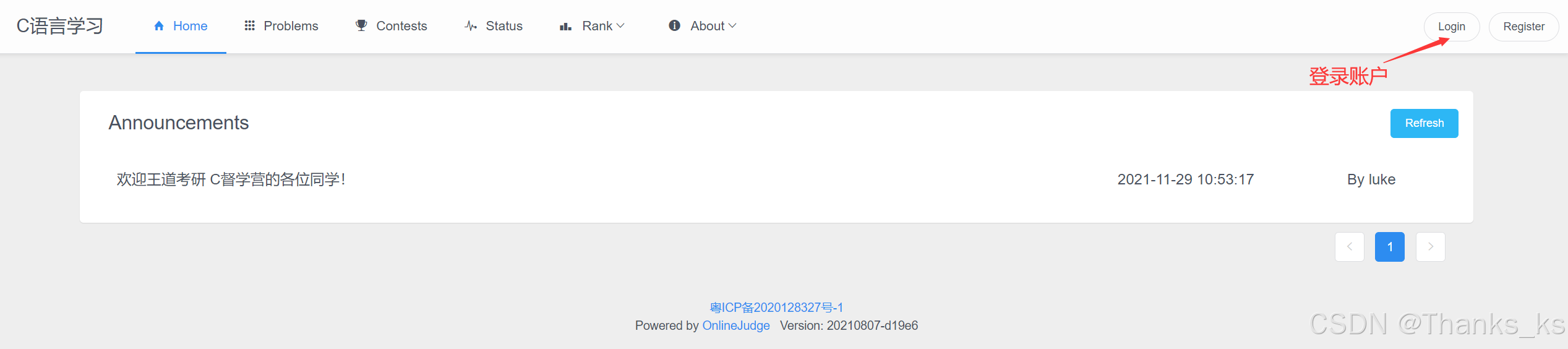 在浏览器输入 http://oj.lgwenda.com/,就可以看到王道 C 督学营的 OJ 网站,如下图所示: