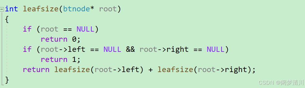 这个也是分为有树根节点,没有树根节点,以及正常的使用递归进行计算的情况,这个时候使用递归进行计算就不需要加上1,因为上面的加1表示这个要加上树根节点,但是这个地方计算的是树叶节点,所以不需要加上1;