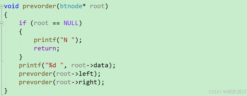 这个代码里面的N表示的就是这个位置的节点是不存在的,因为不是所有的节点都存在,就是标准情况下,一个节点应该是有两个子节点的,一个左节点,一个右节点,但是不可避免的有的节点是没有左节点,或者是没有右节点的,这个时候我们不会不打印任何数据,而是使用N代替说明这个位置的节点不存在;
