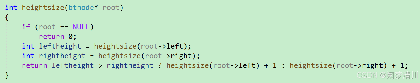- return leftheight > rightheight ? heightsize(root->left) + 1 : heightsize(root->right) + 1;