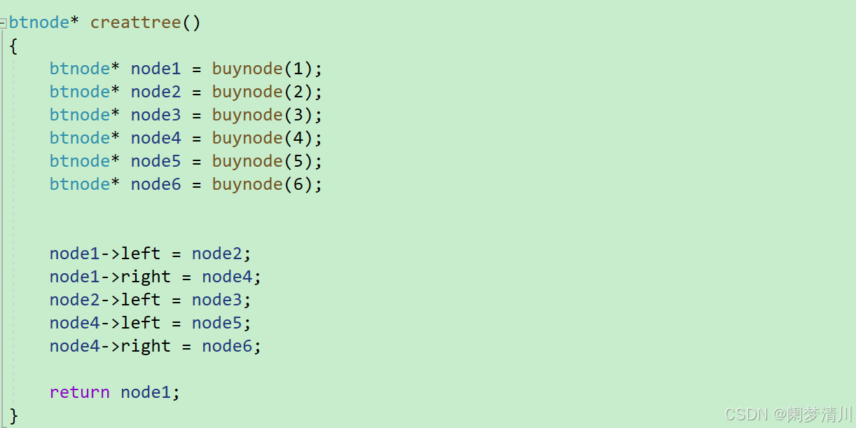 调用上面的buynode函数进行这个节点开辟,并建立不同的节点之间的连接关系,最后返回第一个节点;