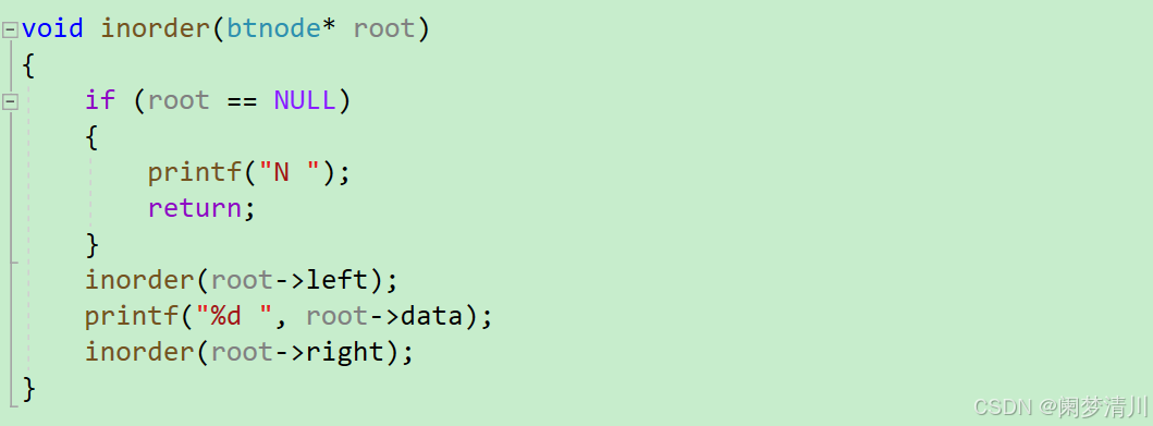 这个就是先访问左边的节点,再访问根节点,最后访问右边的节点,没有字节点的就会打印N代替