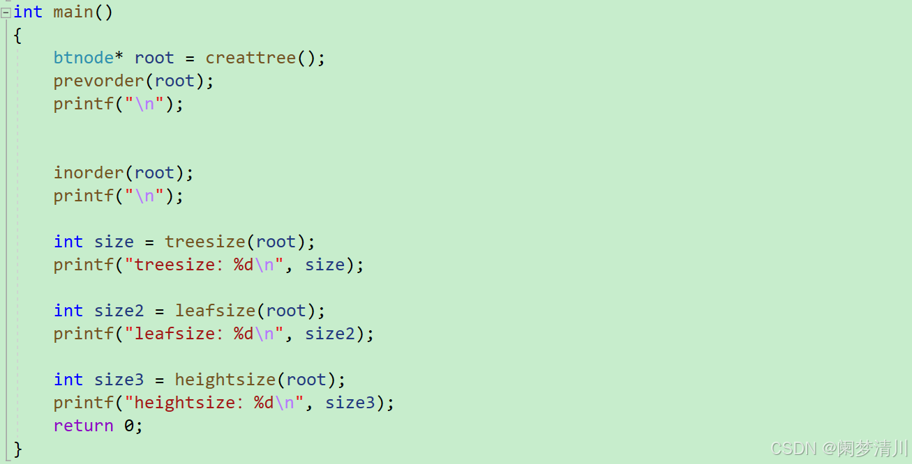 打印输出这个二叉树的高度,节点个数,树叶节点个数进行这个功能的测试;