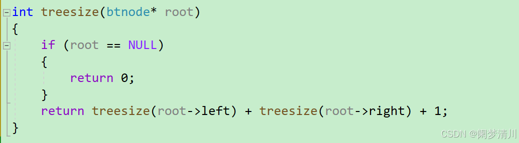 这个地方是使用的递归的方法,如果自己没有根节点,说明这个二叉树的节点的个数是0,否则就是用递归去进行节点个数的计算;