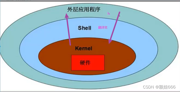 简单来说Shell就相当于是一个翻译官,我们编写的代码,内核看不懂需要Shell进行翻译才能看懂,同理,内核发送给我们的信息我们用户也看不懂,是Shell翻译管在中间给翻译成了我们可以看懂的代码。