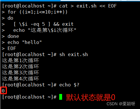 | $? | 上一条命令执行后返回的状态,当返回状态值为0时表示执行正常,非0值表示执行异常或出错。 #echo $? | ![]() |
