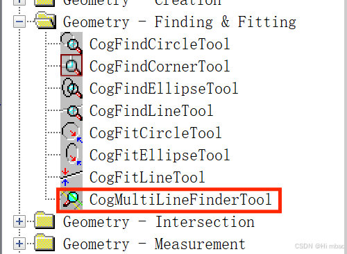 注:有个别工具不在图标里,如Geometry-finding & Fitting里的CogMultiLineFinderTool1