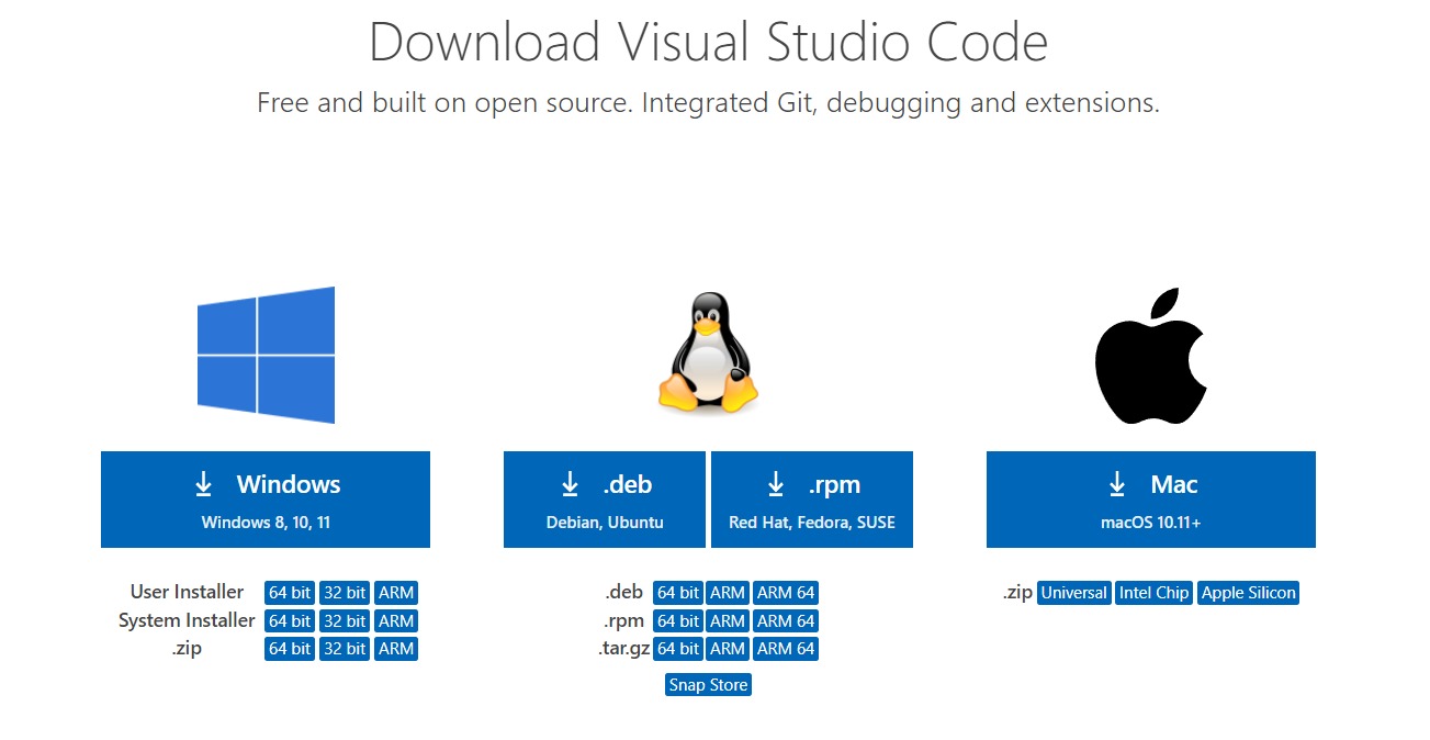 先到VSCode官网去下载适合自己系统的VSCode安装软件
