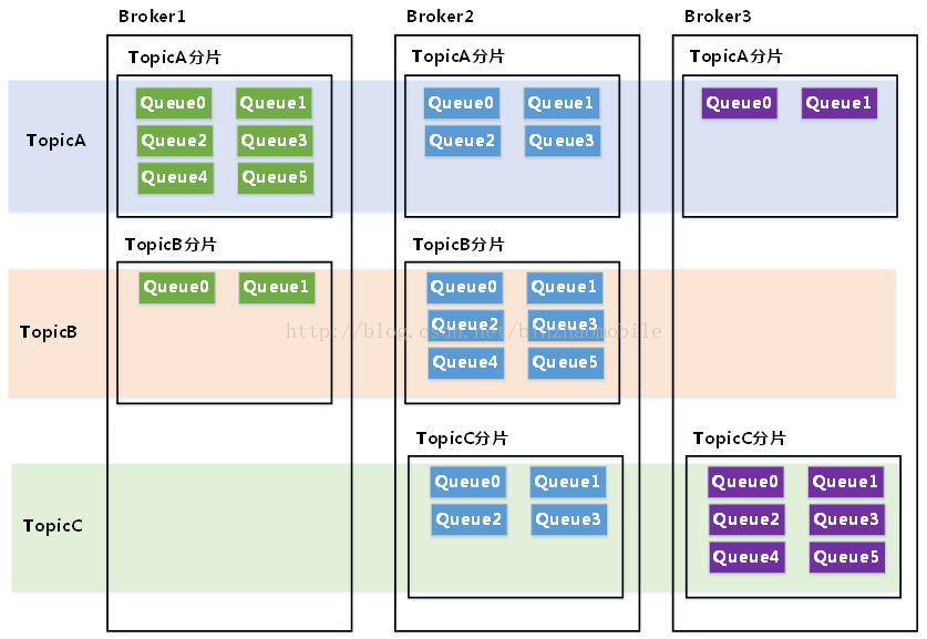 RocketMQ的Topic的物理分布如上图所示: