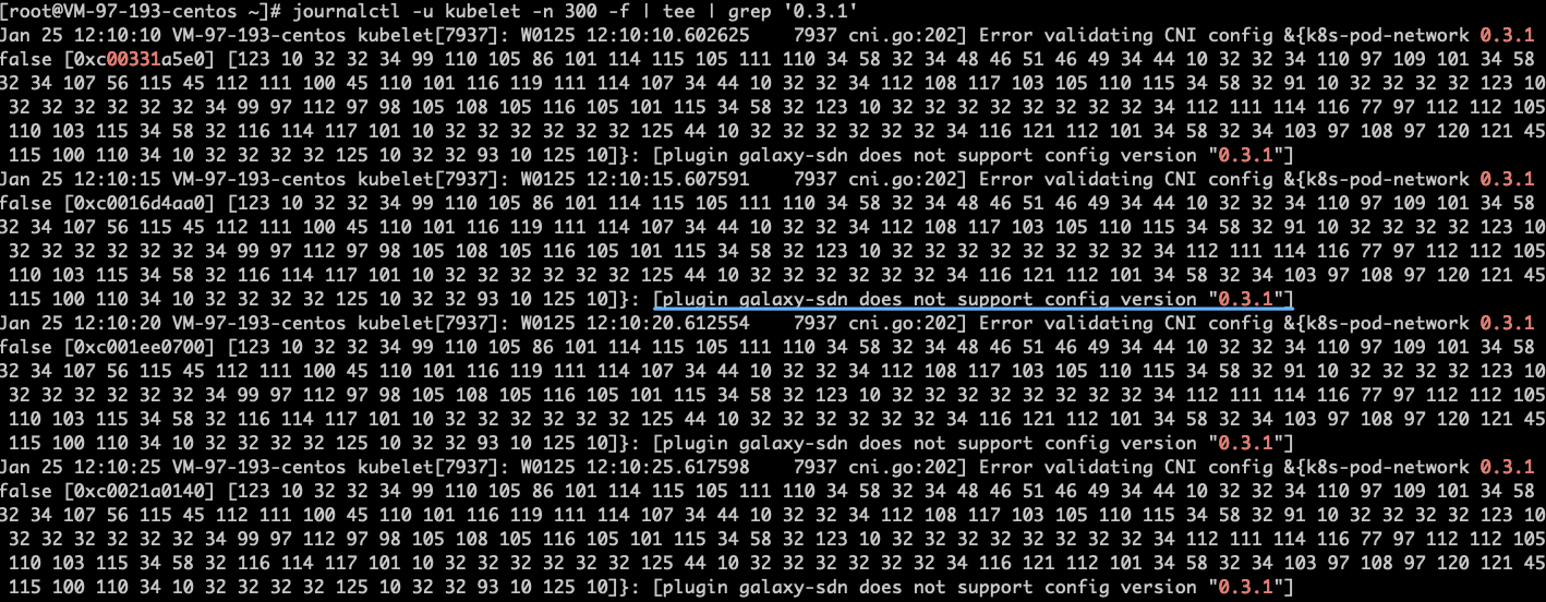 具体原因是,Istio CNI 在将原有配置复制为插件链模式的过程中,会删除原配置中的 cniVersion 版本号(如果有),在新生成的插件链配置文件 00-galaxy.conflist 时,将此版本号强制改为 Galaxy CNI 尚未支持的 0.3.1。进入 Galaxy CNI 相关 daemonset 容器,并模拟执行 CNI 版本检查命令,可以发现此集群上 Galaxy CNI 支持的 cniVersion 最高为 0.2.0。相关源码可点击此处。