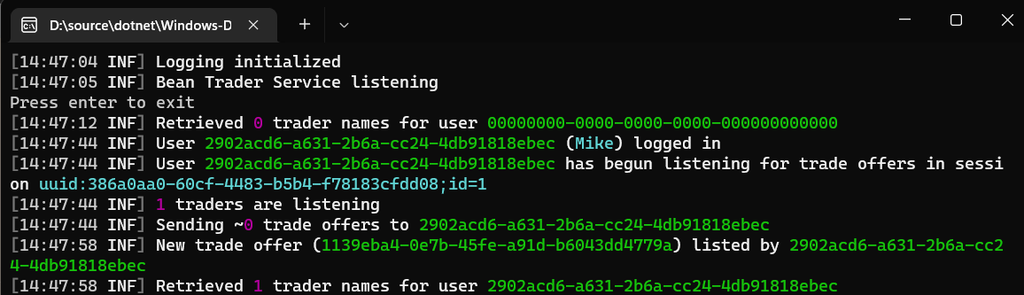 示例项目 Bean Trader ( GitHub 地址 ) 是多年以前,我在演示如何迁移到 .NET Core 的时候创建的示例。因为该示例本来是仅仅用来展示如何迁移客户端,Bean Trader 服务就非常简单。它包含一个含有模型和接口的类库,以及一个用来托管 WCF 服务的控制台应用程序 ( 使用支持证书验证的 Net.Tcp 传输 )。支持客户端发出或者接受交易不同颜色的豆子。尽管该示例应用很小,我想它对于展示迁移到 .NET 6 的过程还是有用的。