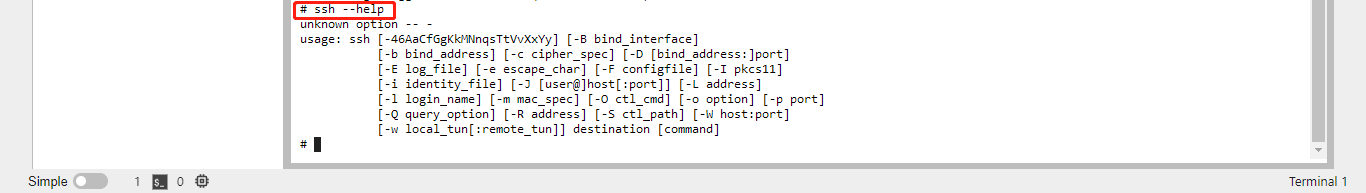 # 检查 ssh client 安装情况 ssh --help