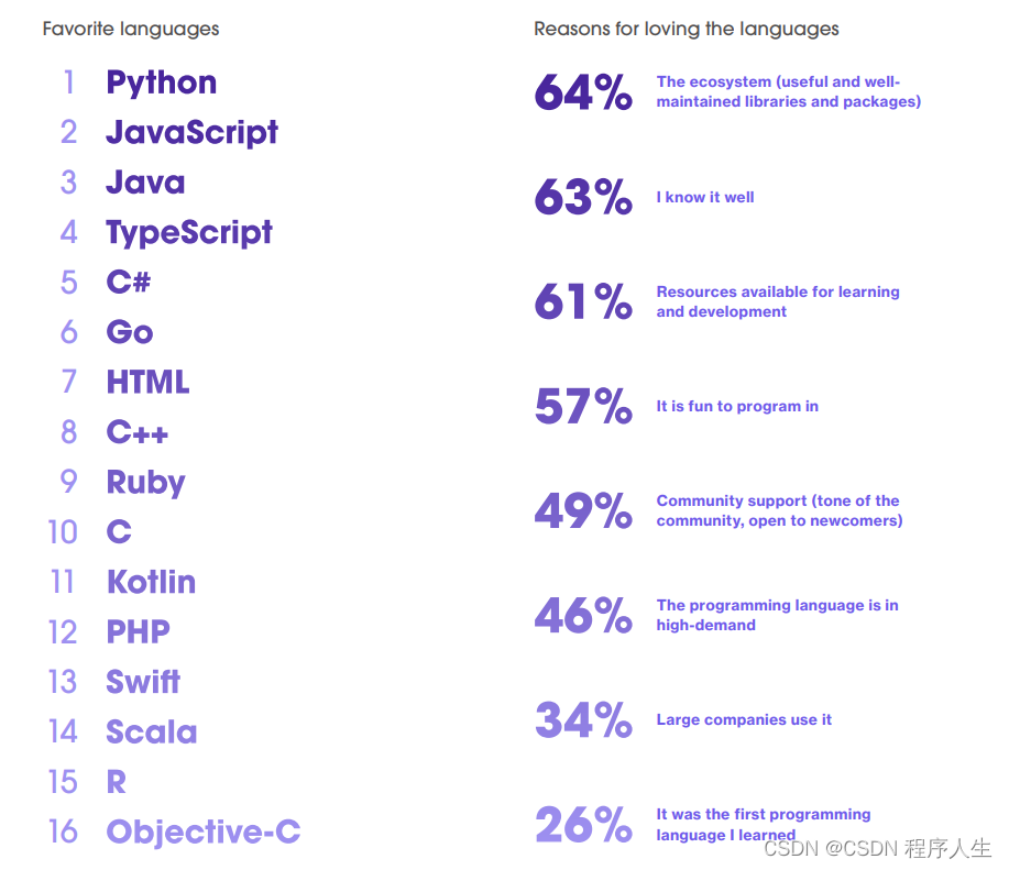 最喜欢的原因是:1.有用且拥有维护良好的库和包;2.熟悉这些编程语言,编程时更有乐趣